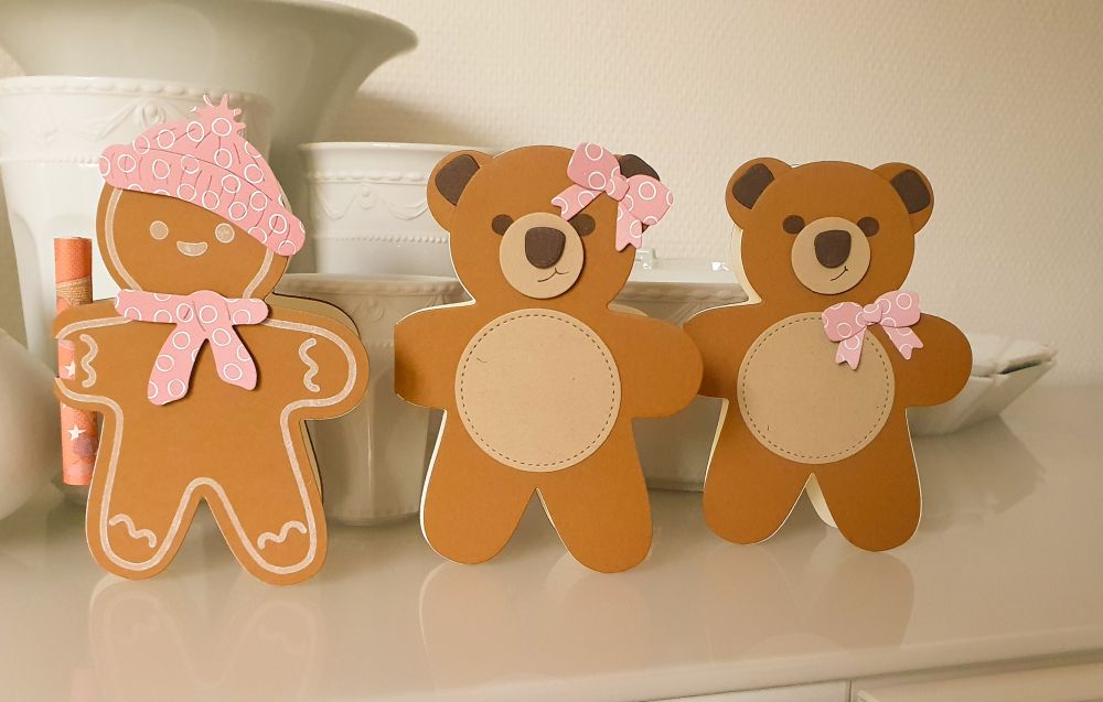 Außerdem zeige ich Euch, dass die Stanzform das ganze Jahr über genutzt werden kann, indem man einen Teddy aus den im Set vorhandenen Stanzen “baut”. Lediglich der Bauch stammt aus einem anderen Set.
