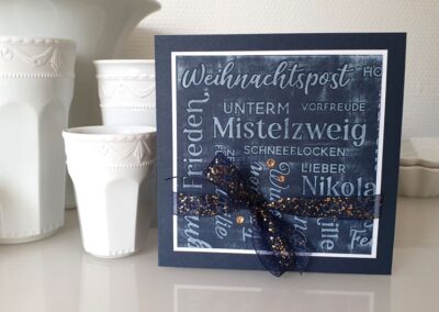 Cardstock (hier Tiefseeblau) 28 x 14 cm, falzen bei 14 cm